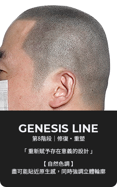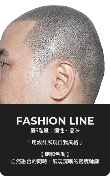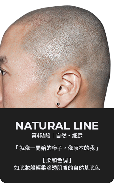 根據膚況與掉髮進程採用Tone-on-Tone技法,讓線條與線條之間自然銜接,運用漸層技術在頭皮上呈現真實的立體感。